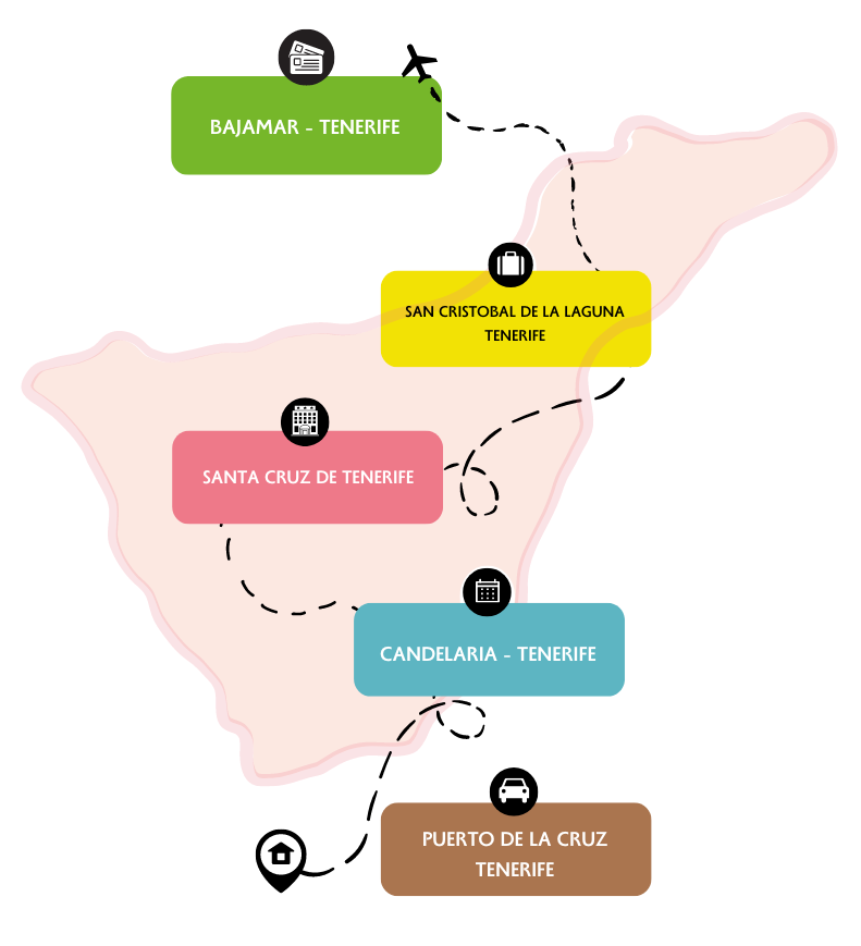 Bajamar – La Laguna – Santa Cruz – Candelaria – Puerto de la Cruz.